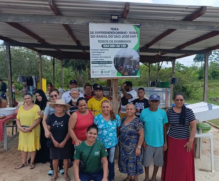 Empreendedoras e empreendedores que se organizam semanalmente para manter uma feira colaborativa.